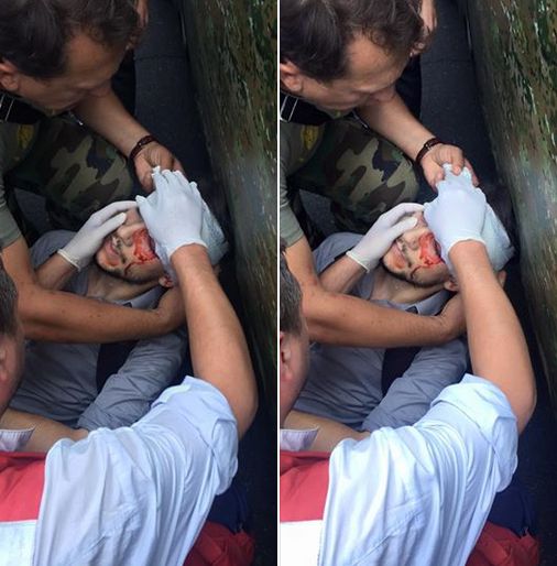 "Френски журналист е ранен в главата от камък. Оказана му е първа помощ и е предаден на бърза помощ. 17-а киевска болница е препълнена", написа в своя Фейсбук Гончаренко.