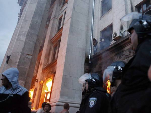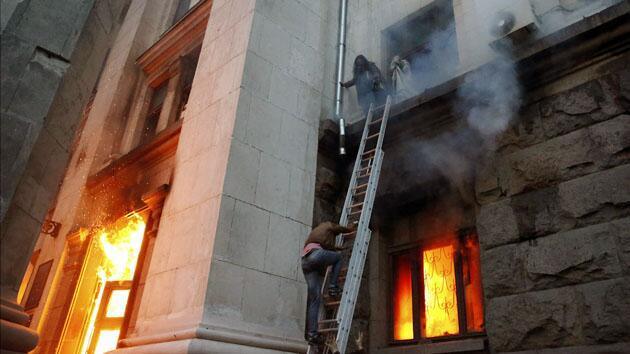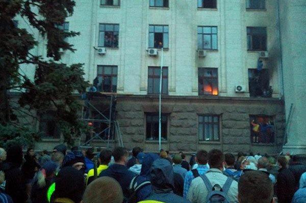 Според думите му, от „Десен сектор" веднага започнали употреба на травматично и огнестрелно оръжие по тях. „Момчето, което се намираше редом до мене, бе улучено веднага. Нас ни натикаха вътре в сградата и отрязаха всички пътища назад. Аз се оказах в дясното крило на 3-ия етаж, бяхме 10 човека в някаква стая. От Десен сектор започнаха да хвърлят в сградата коктейли Молотов и да стрелят по прозорците. Първият етаж вече гореше, после огънят се покачи нагоре, димът беше по коридорите, не можехме да излезем по никакъв начин... Отваряхме и разбивахме стъклата, но това не можеше да ни спаси: димът от улицата ни вкарваше обратно в сградата. Някои започнаха да скачат от прозорците, долу ги доубиваха. Отдолу крещяха „Слава на Украйна" и „Смърт на враговете"...Това беше ад! Дойдоха пожарникари, започнаха да гасят 1 етаж...", - разказва очевидецът.