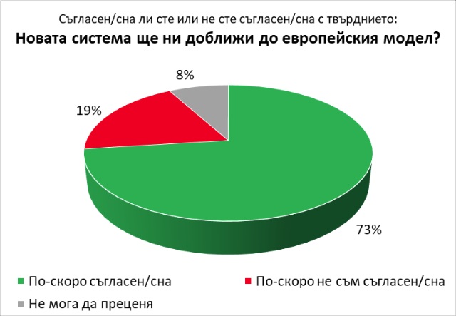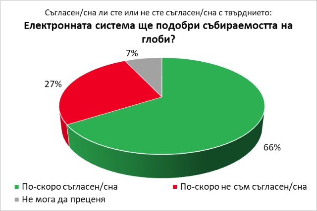 Въпреки всичко, въвеждането на системата се смята за приближаване до европейския образец (73% са съгласни), а 66% вярват, че ще се повиши събираемостта на глобите. На този етап това са по-скоро обществени инстинкти, отколкото реално масово мнение.
