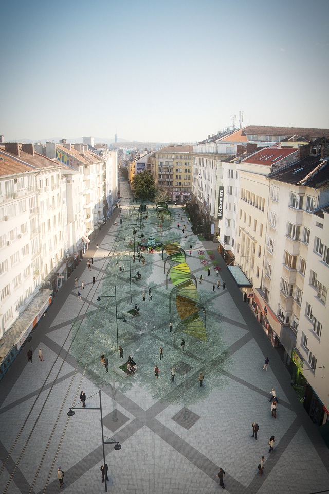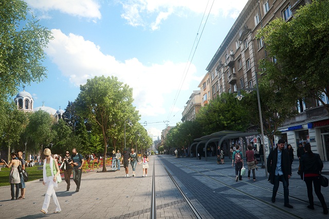 От „Алабин“ до бул. „Евлоги и Христо Георгиеви“ улицата ще бъде постлана с двуцветна гранитна настилка, която ще разшири визуално пространството чрез ромбоидни мотиви и премахване на бордюрите. Шумът от трамваите ще бъде потушен чрез полагане на „гумени легла“ на релсите. А шосето за автомобили ще бъде „очертано“ с вградени в настилката лампи.
