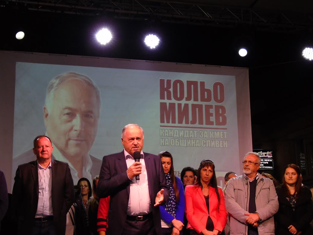„Спомням си как изглеждаше Сливен преди 4 години. След 8 години тежко и безперспективно управление на града, той беше стигнал до бедствено положение. Радвам се, че успяхме да повишим репутацията на общината, защото през 2011 г. тя беше най-ниската в цяла България, със спрени европейски средства по две програми". Това каза кандидатът на БСП за кмет на Сливен Кольо Милев. Той припомни, че когато е станал кмет, се е наложило общината отново да защитава проекти и да получи доверието на правителството и Европа. По думите му са изпълнени много европейски проекти, като посочи, че водният цикъл на града е вече факт, както и реставрацията на крепостта Туида, която се в превърнала в емблематично място за града, а паркът "Юнак" е станал любимо място на сливенци. Той добави, че въпреки, че общината е имала да връща стари задължения на стойност 36 млн. лв., за тези четири години Сливен е бил преобразен. Кандидатът за кмет обясни, че администрацията е готова и с нови проекти, като най-важният от тях е и интегрираният градски транспорт, а е време и да се въведат синя и зелена зона в града. „Вярвам, че всички вие ще подкрепите кандидатите на БСП в община Сливен с №19 и ще постигнем победа още на първи тур", завърши Милев.