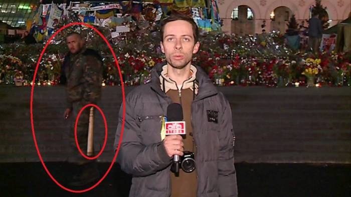 Докато група хора подпалват палатки по улиците, може би за отвличане на вниманието, други граждани, които са се криели зад вратите са били нападнати от екстремисти от „Десен сектор".
