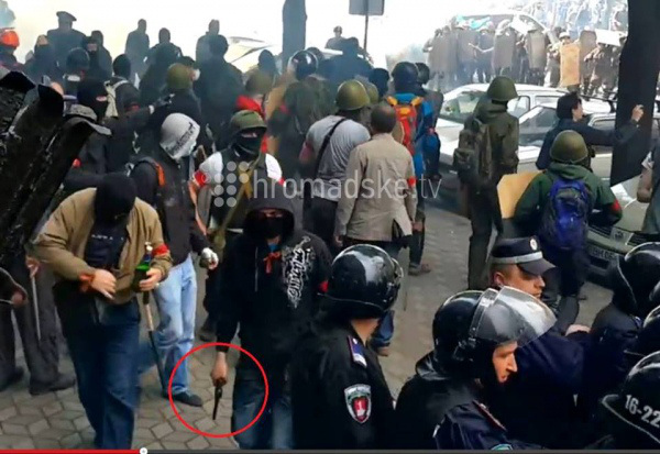 И още. Тук виждаме, че някои са въоръжени с огнестрелно оръжие, а органите на реда имат заповед да не ги закачат, както се вижда от снимката: