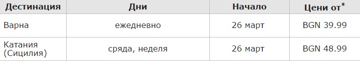 /КРОСС/Wizz Air, най-голямата нискотарифна авиокомпания в Централна и Източна Европа, и водещ превозвач в България, започна два нови полета от София. Най-новите линии свързват ежедневно столицата с другото WIZZ летище в България-Варна, и два пъти седмично с популярния ваканционен маршрут Катания, на остров Сицилия. Местата са в продажба на цени от BGN 39.99* на wizzair.com.