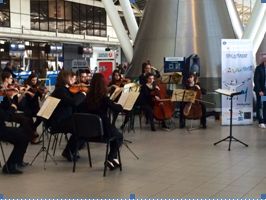 София /КРОСС/ Студенти от Националната музикална академия „Проф. Панчо Владигеров" изненадаха пътниците на Терминал 2 с флашмоб „Диригент за една минута". На Летище "София" стартира проект на младите музиканти, който ще продължи и на други ключови места в столицата.