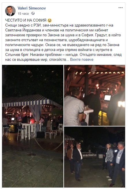 /КРОСС/ След акциите срещу шумните заведения по морските ни курорти, Валери Симеонов се зае да осигури тишина в късните часове и в София.