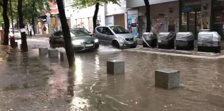 /КРОСС/ Пороен дъжд, придружен с гръмотевична буря и силен вятър, се изсипа над София. Мълния удари трафопост на кръстовището на булевард „Константин Величков" и улица „Симеон" в София и предизвика пожар.