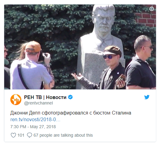 Деп посещава Мавзолея на Червения площад заедно с легендарния музикант от "Аеросмит" (Aerosmith) Джо Пери и той също позира за снимката на гроба на Йосиф Сталин, който е погребан в кремълската стена.