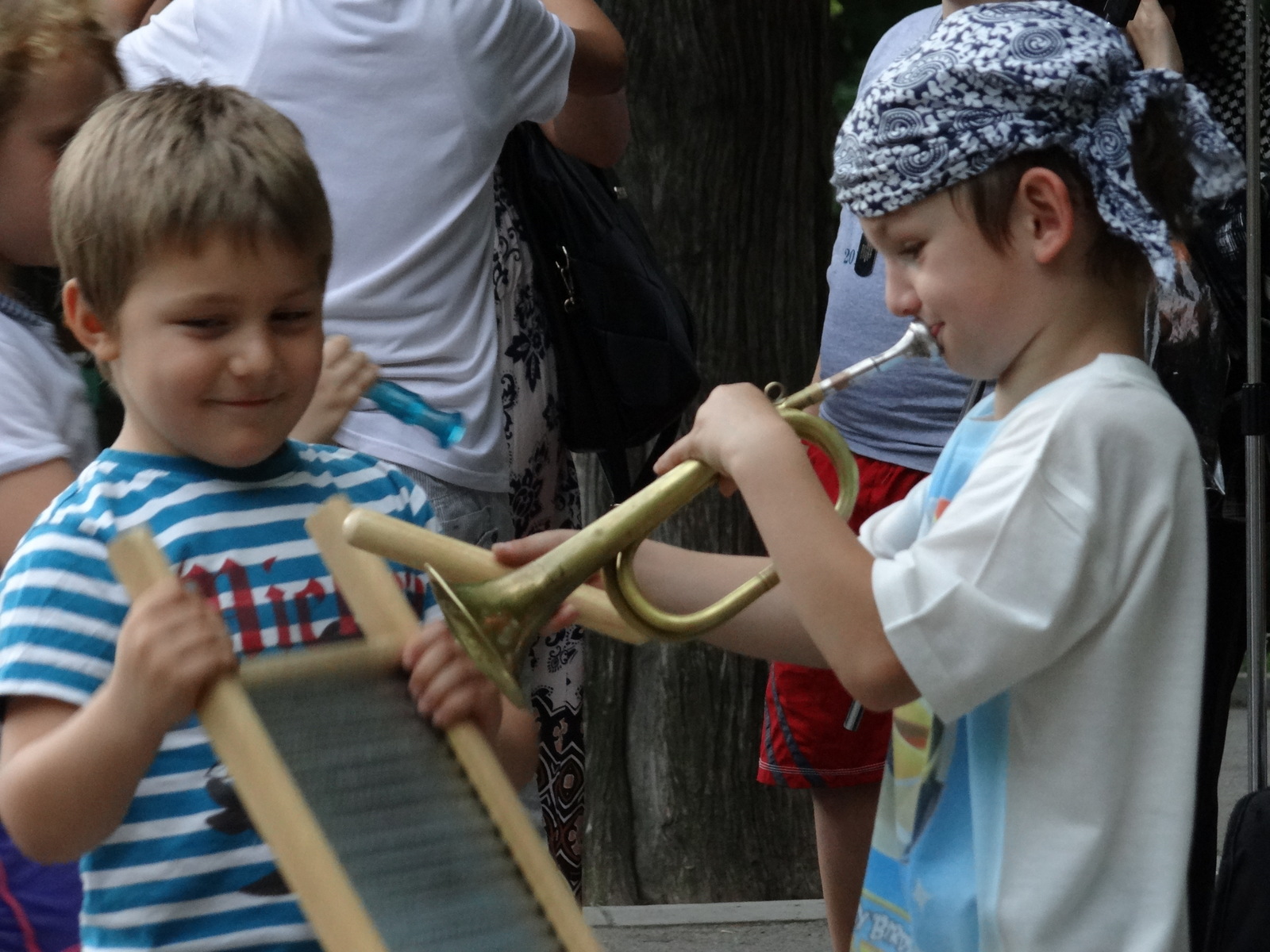 От снощи в парк „Пети октомври" деца и възрастни могат да посвирят и пеят заедно с музикантите и да се забавляват, импровизирайки върху популярни джазови теми и детски песни. Да пеят, танцуват и да чуят хубава музика вчера бяха дошли стотици хора. Сред тях с удоволствие тактуваха и председателят на общинския съвет Емил Христов, и зам.-кметът Иванка Сотирова, музикантите от Военен биг бенд Стара Загора. Но най-щастливи и завладени от случващото се в парка бяха децата. „Джаз за деца" продължава във вторник и сряда от 11 часа на същото място.