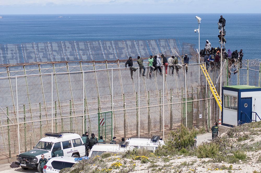 Испански-мароканската граница край Мелила е висока шест метра ограда с бодлива тел. Граничните служители редовно задържат нелегални имигранти, атакуващи 10-километровия участък.