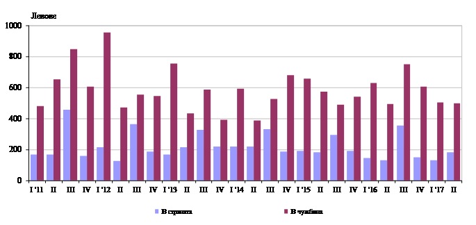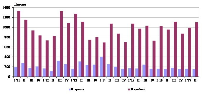 През второто тримесечие на 2017 г. средният разход при пътуване с лична цел на едно лице на възраст 15 и повече навършени години е 183.41 лв. в страната и 497.67 лв. в чужбина. Същевременно разходите на едно лице за професионално пътуване са средно 154.76 лв. в страната и 1 099.35 лв. в чужбина (фиг. 6 и 7).