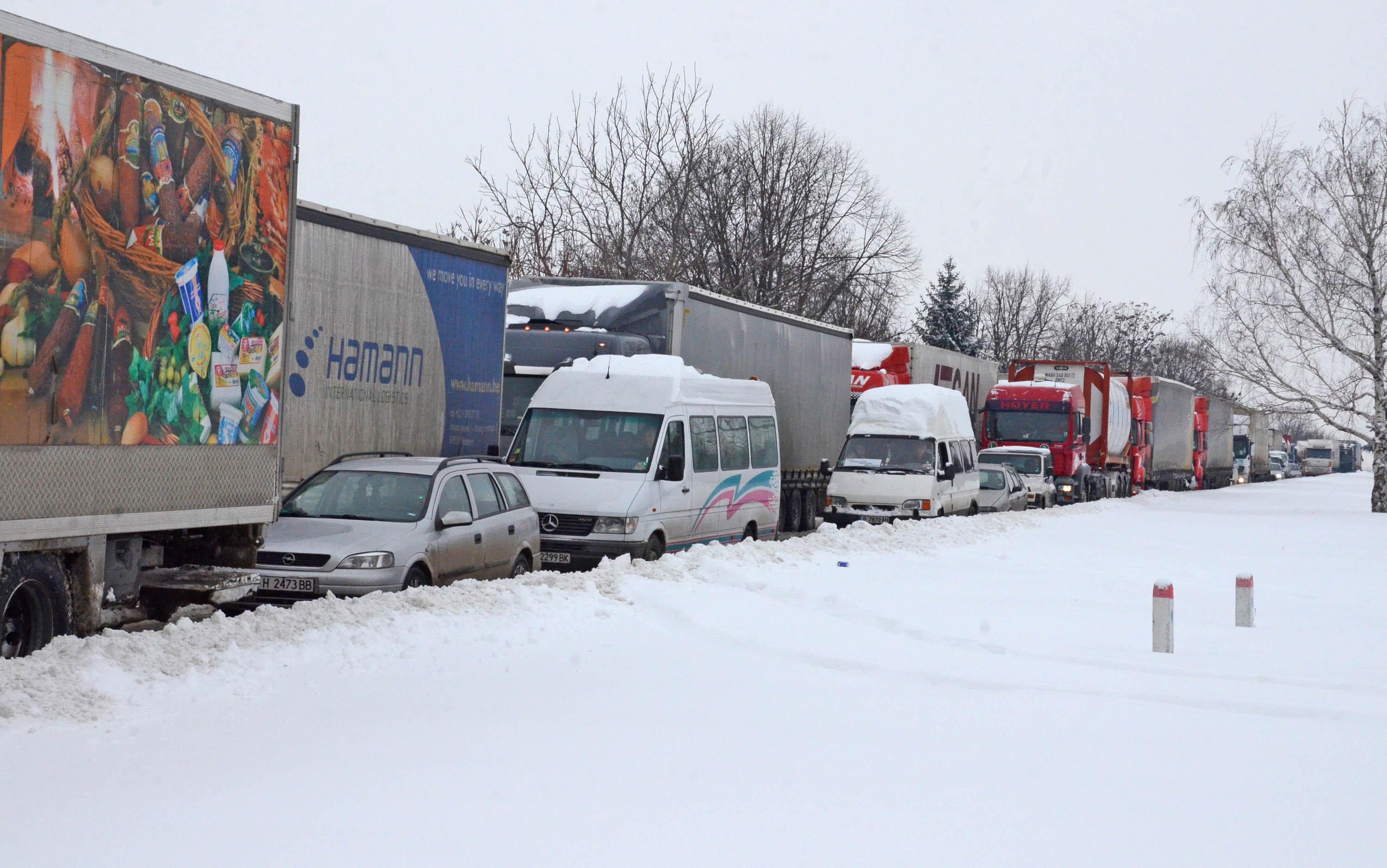 Товарните автомобили досега са били на паркинг, заради почистването на пътищата във вътрешността на страната и сега пристигат от вътрешността на страната, за да преминат през моста.