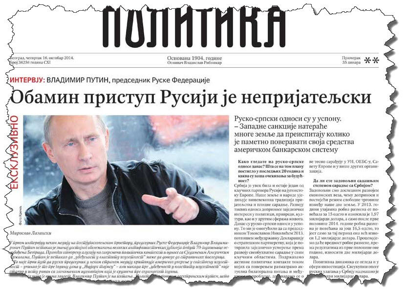 Руският президент Владимир Путин даде интервюто за сръбския вестник "Политика" в навечерието на своето посещение в Белград.