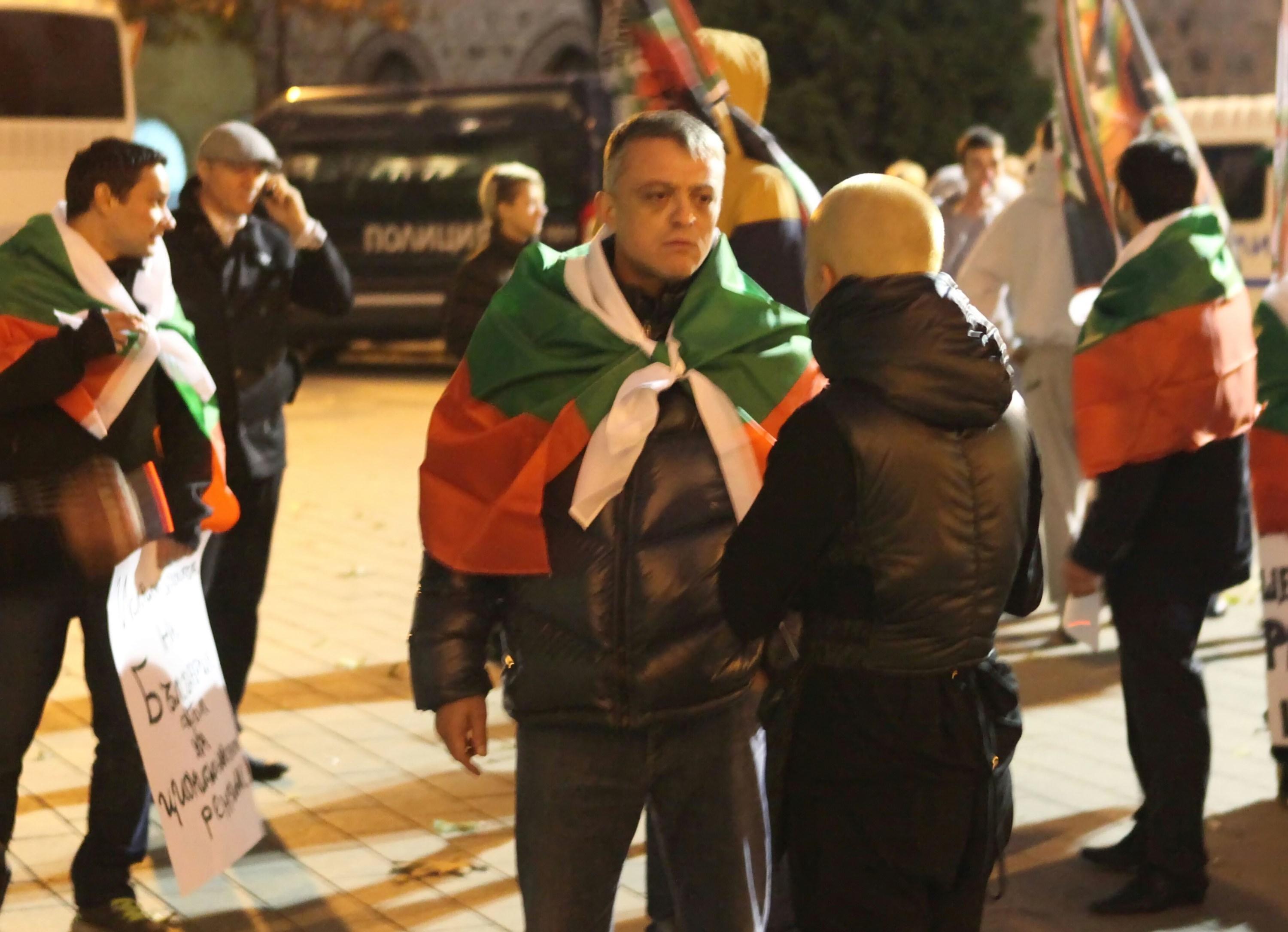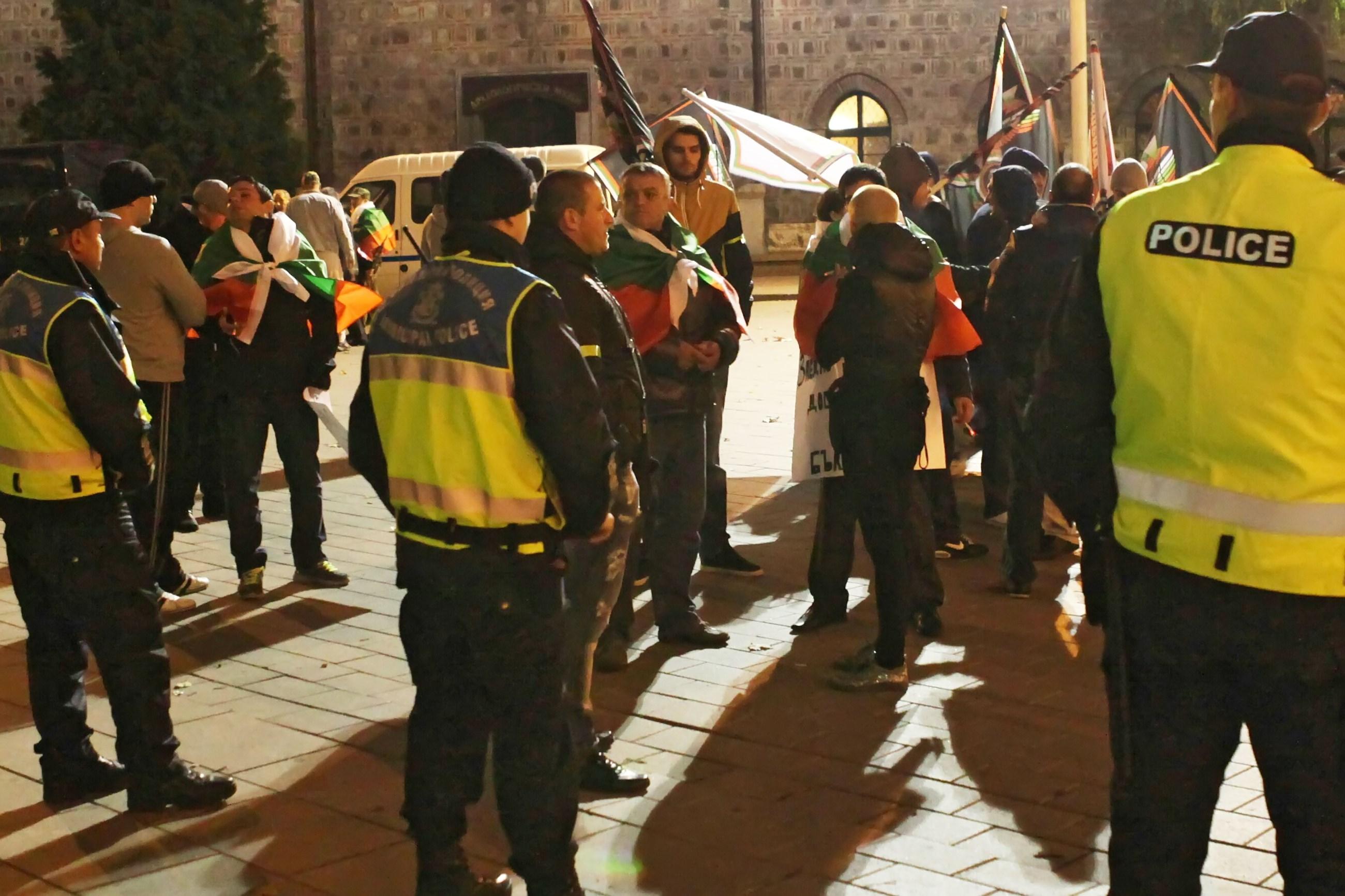 Кордон от полицаи предотврати евентуални сблъсъци между отделните групи, като раздели провокаторите от протестиращите срещу кабинета "Орешарски". Привържениците на движение „Свобода" са отделени в района пред кабинката на гвардейците, докато останалите граждани са пред Министерски съвет. На мястото има 4 коли на жандармерията.