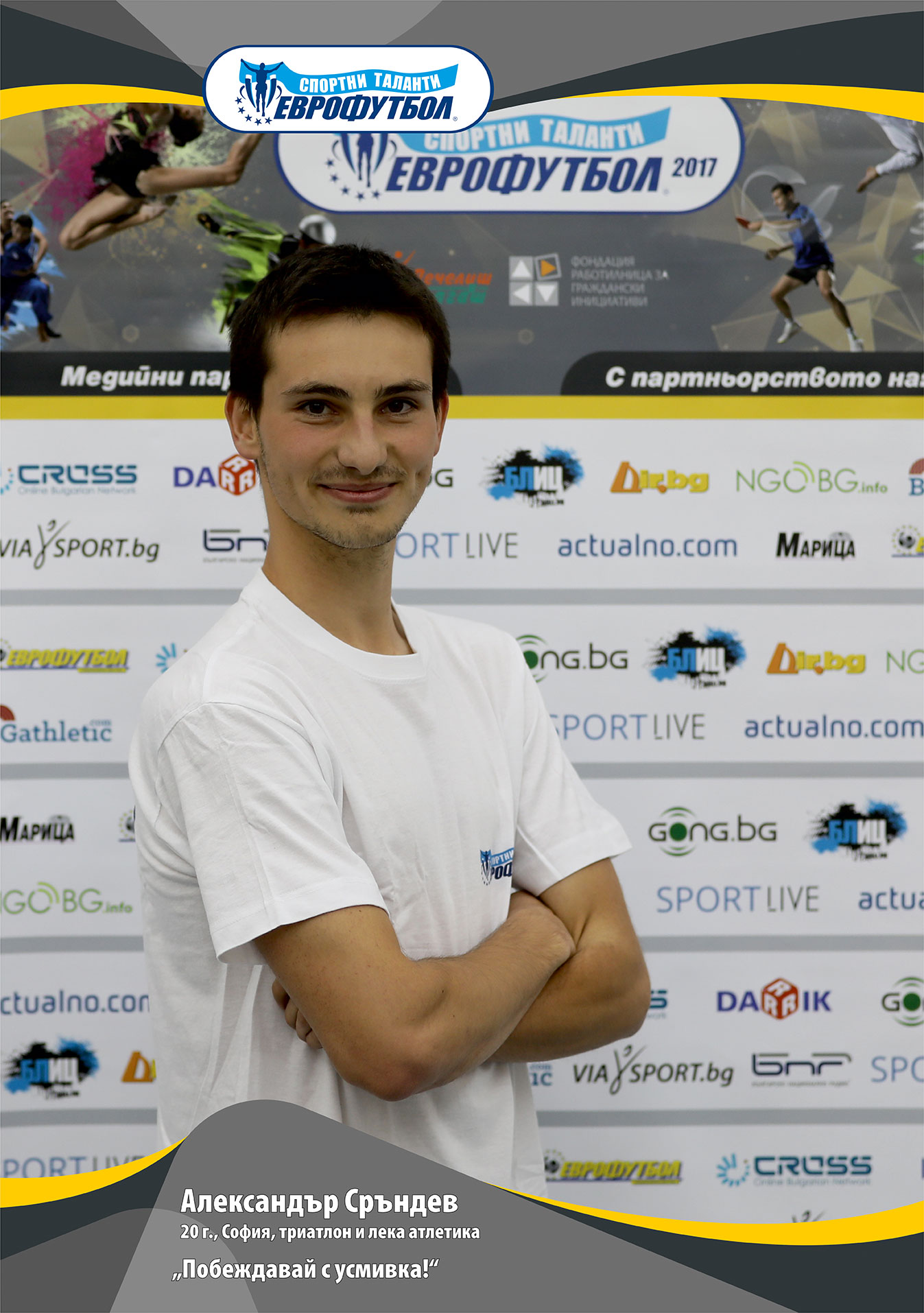 /КРОСС/ Спортните таланти на „Еврофутбол" изгряха на плакати. От 16 юни 2017 г. всичките 27 спортисти за 2017 година ще красят букмейкърските пунктове в цялата страна, както и спортни зали, клубове и училища. Фотографиите са дело на Тони Тончев и са направени специално за целта.
