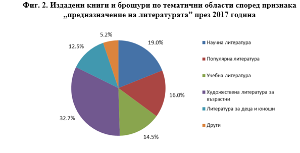 По тематични области според признака „предназначение на литературата”1 разпределението на изданията по раздели през 2017 г. е следното: