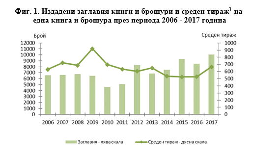 През 2017 г. с уникалния идентификационен код ISBN (Международен стандартен номер на книгата) са регистрирани 7 948 книги и 1 315 брошури, или 92.0% от всички издания, което е увеличение от 18% спрямо броя на издадените книги и брошури през предходната 2016 г. Това се вижда от статистика на Националния статистически институт (НСИ) относно издателската дейност у нас през 2017 г.