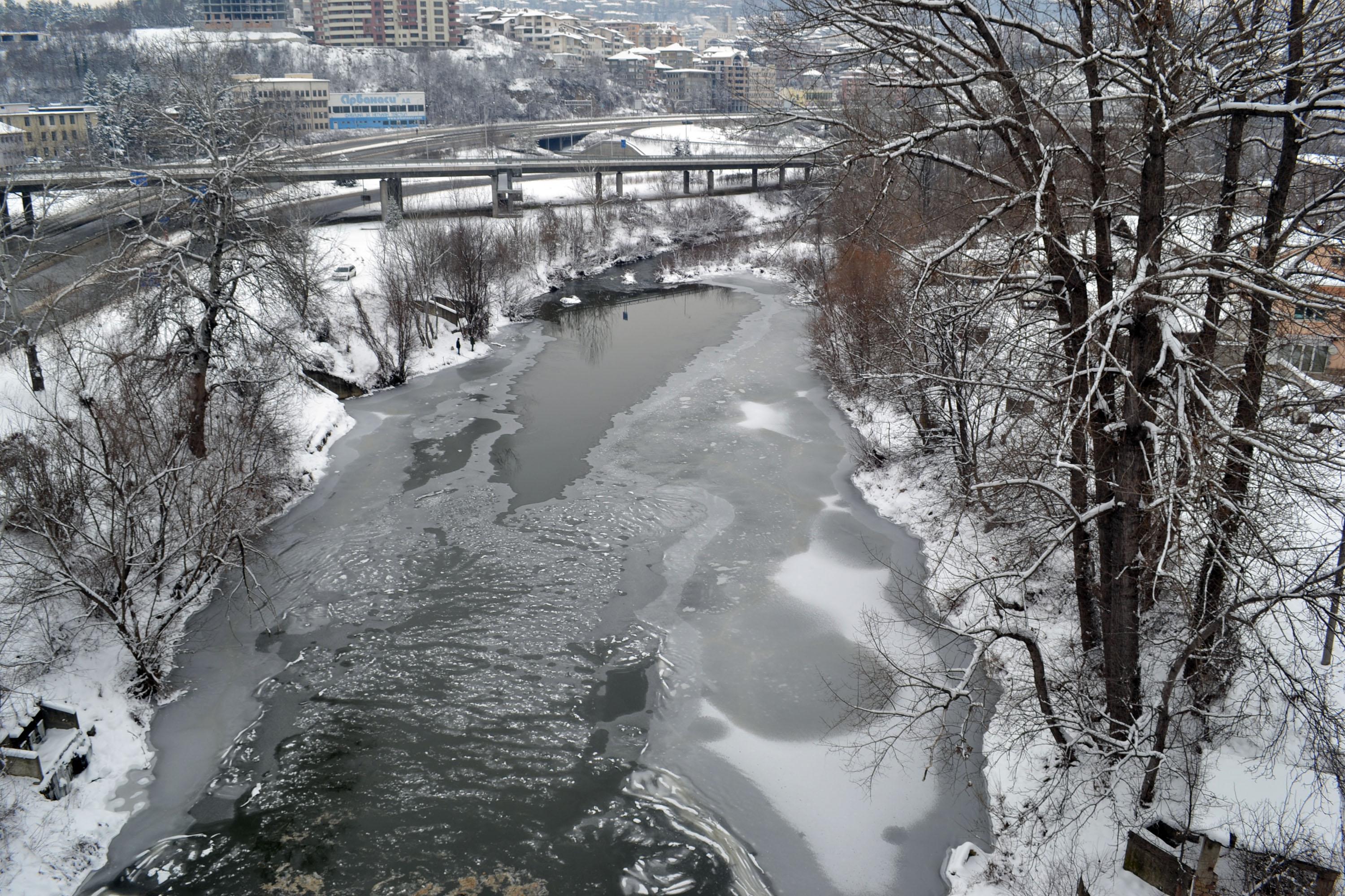 Велико Търново /КРОСС/ Река Янтра замръзна на места по течението си край Велико Търново.