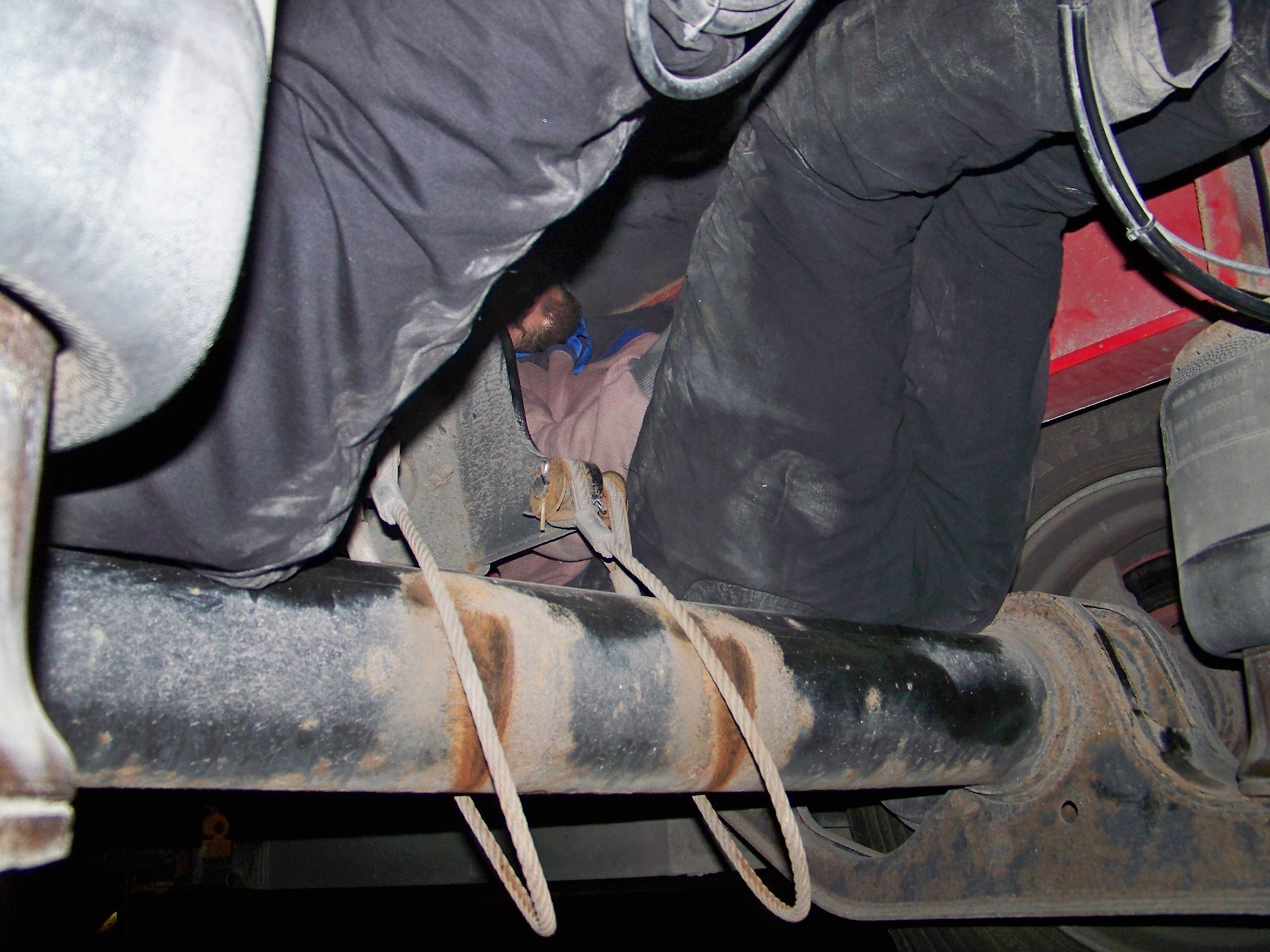 Вторият ТИР марка „Волво", с турска регистрация, също е превозвал две лица, укрити на осите на гумите, над ремаркето. Първоначално те се представили за сирийски граждани. Проверката установила, че единият е сириец, а другият турски гражданин. Водачът заявил, че турски каналджия му предал двете лица на магистралата край гр.Истанбул. Той трябвало да ги остави в Центъра за бежанци в гр. Харманли.