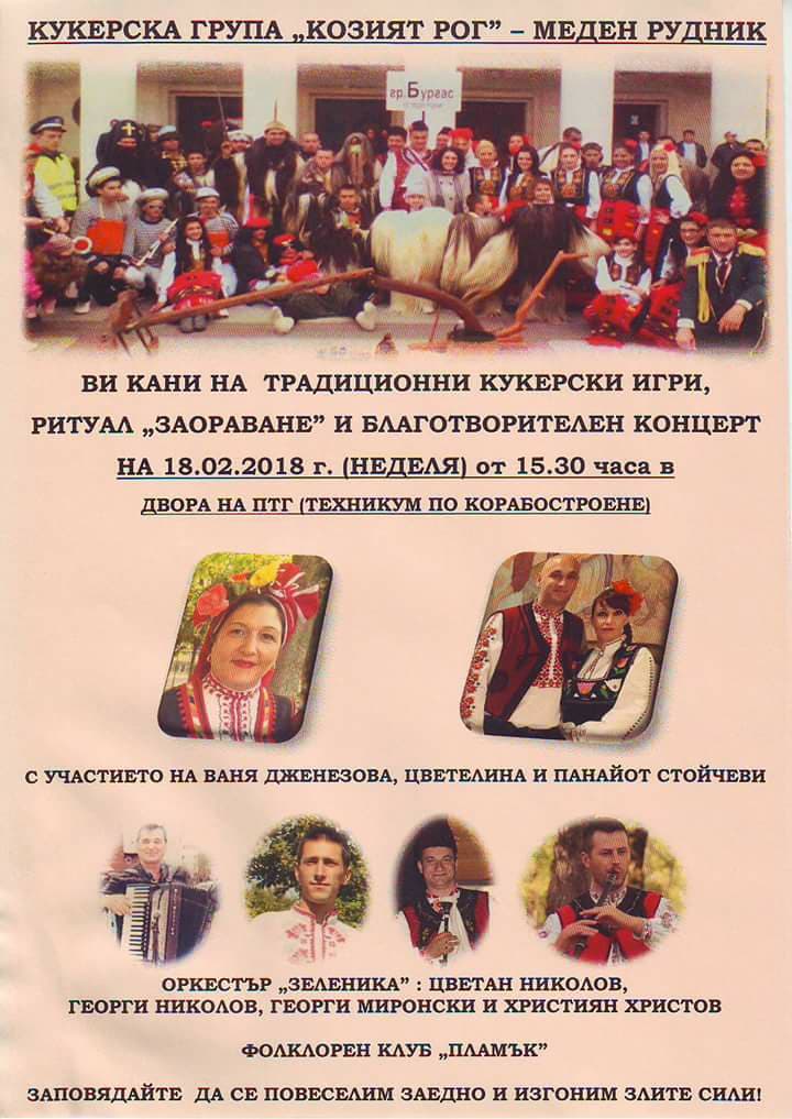 /КРОСС/ По традиция в края на месец февруари в комплекс "Меден рудник" се провеждат кукерски игри. Тази година те ще бъдат на 18 февруари, неделя. Шествието започва в 7.30 часа от дома на "Царя" на ул. "Въстаническа" №55.
