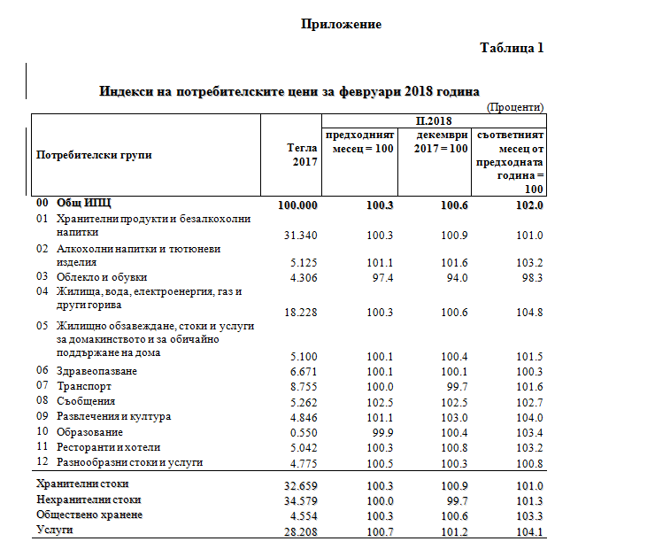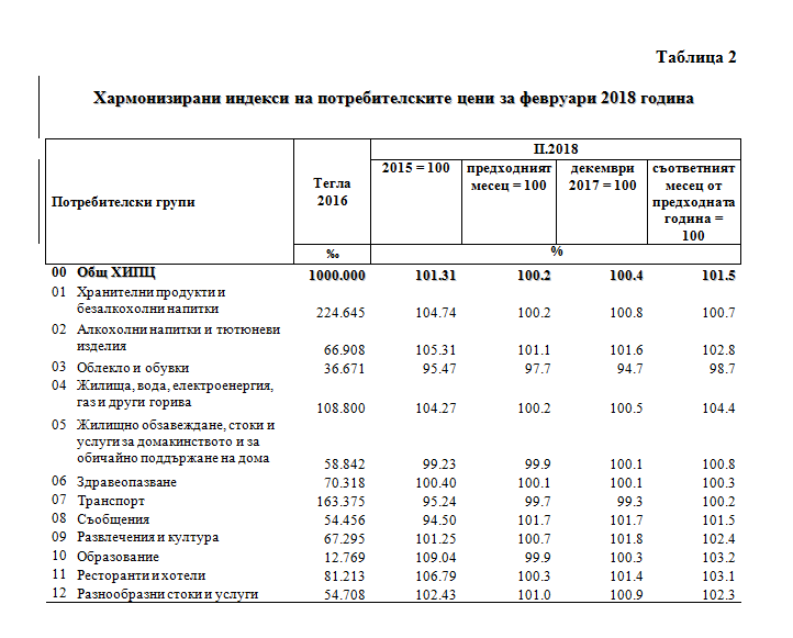 2018 г. спрямо февруари 2017 г. е 1.5% (табл. 2 от приложението).