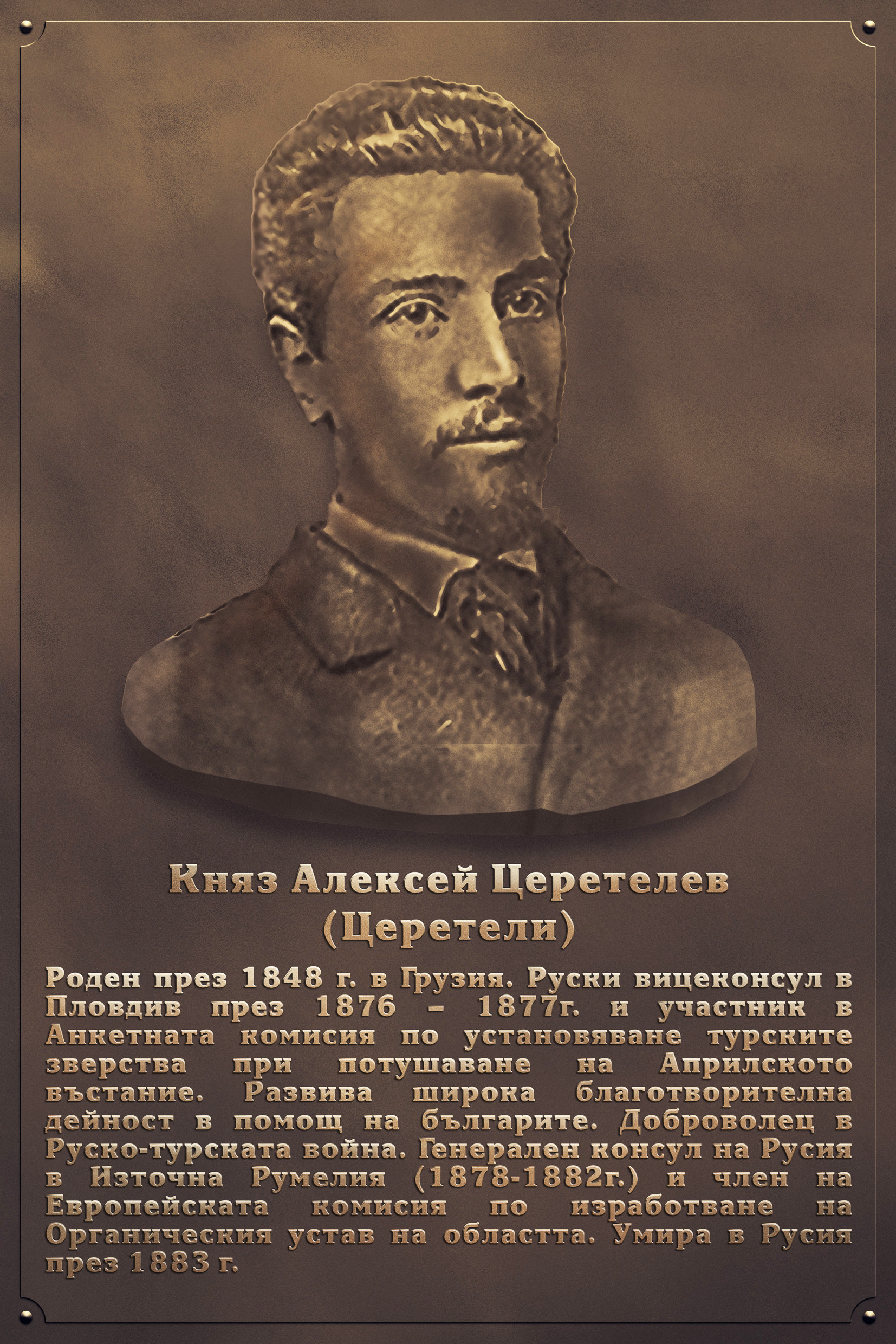 Мемориална плоча на княз Церетелев ще бъде поставена на ресторант „Пълдин" в Пловдив, за да напомня за делото на руския дипломат, който се бори за правата на българите и за осигуряването на автономия на Южна България. Барелефът също е дело на Зураб Церетели.