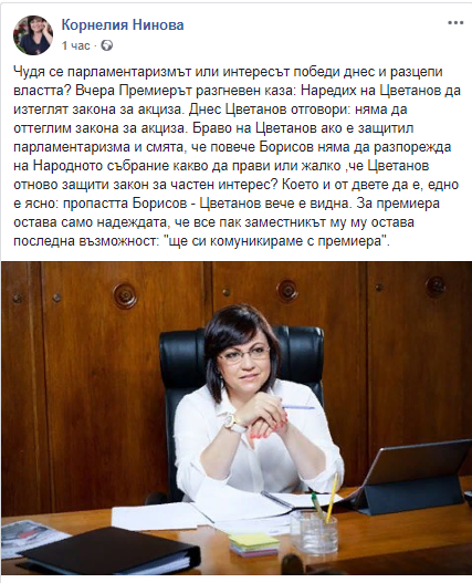 Чудя се парламентаризмът или интересът победи днес и разцепи властта? Вчера Премиерът разгневен каза: Наредих на Цветанов да изтеглят закона за акциза.