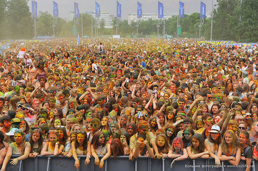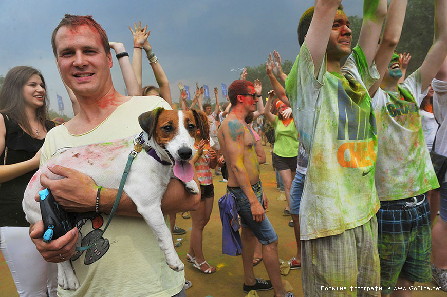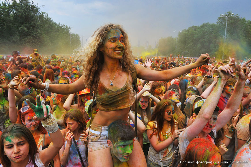 /КРОСС/ В Москва се проведе един от най-цветните и весели празници в света - фестивалът на индийските цветове Холи ("Holi Festival of Colors"). Съгласно старинната индийска традиция, по време на необикновения фестивал, гостите му посипват един друг с разноцветни бои, същевременно пожелавайки късмет и благоденствие.