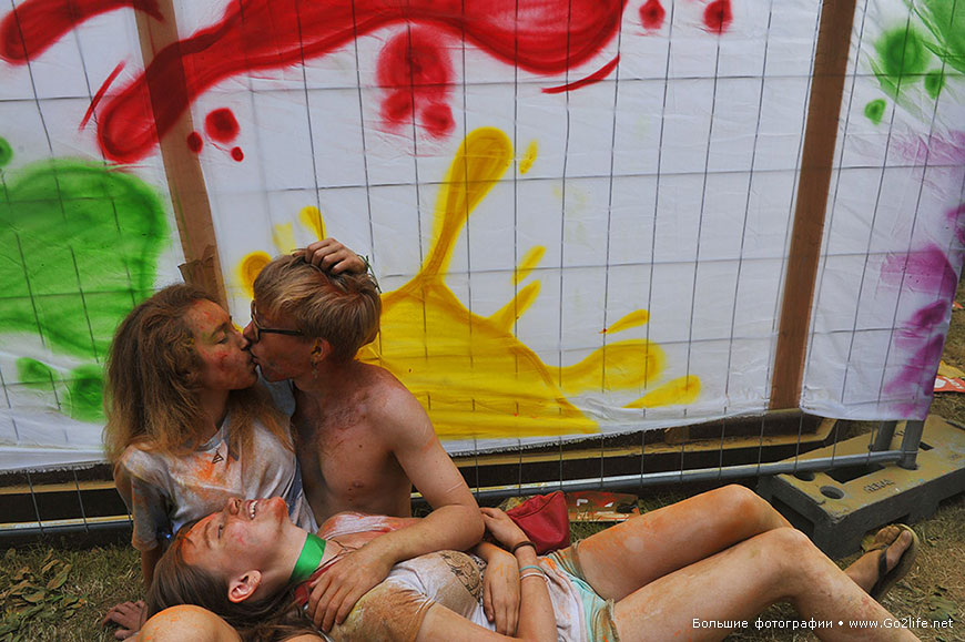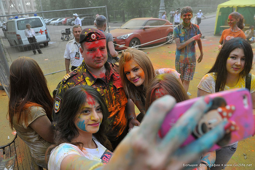 На всички фотоси: участници на фестивала на цветовете „Холи" в Лужники (Москва).