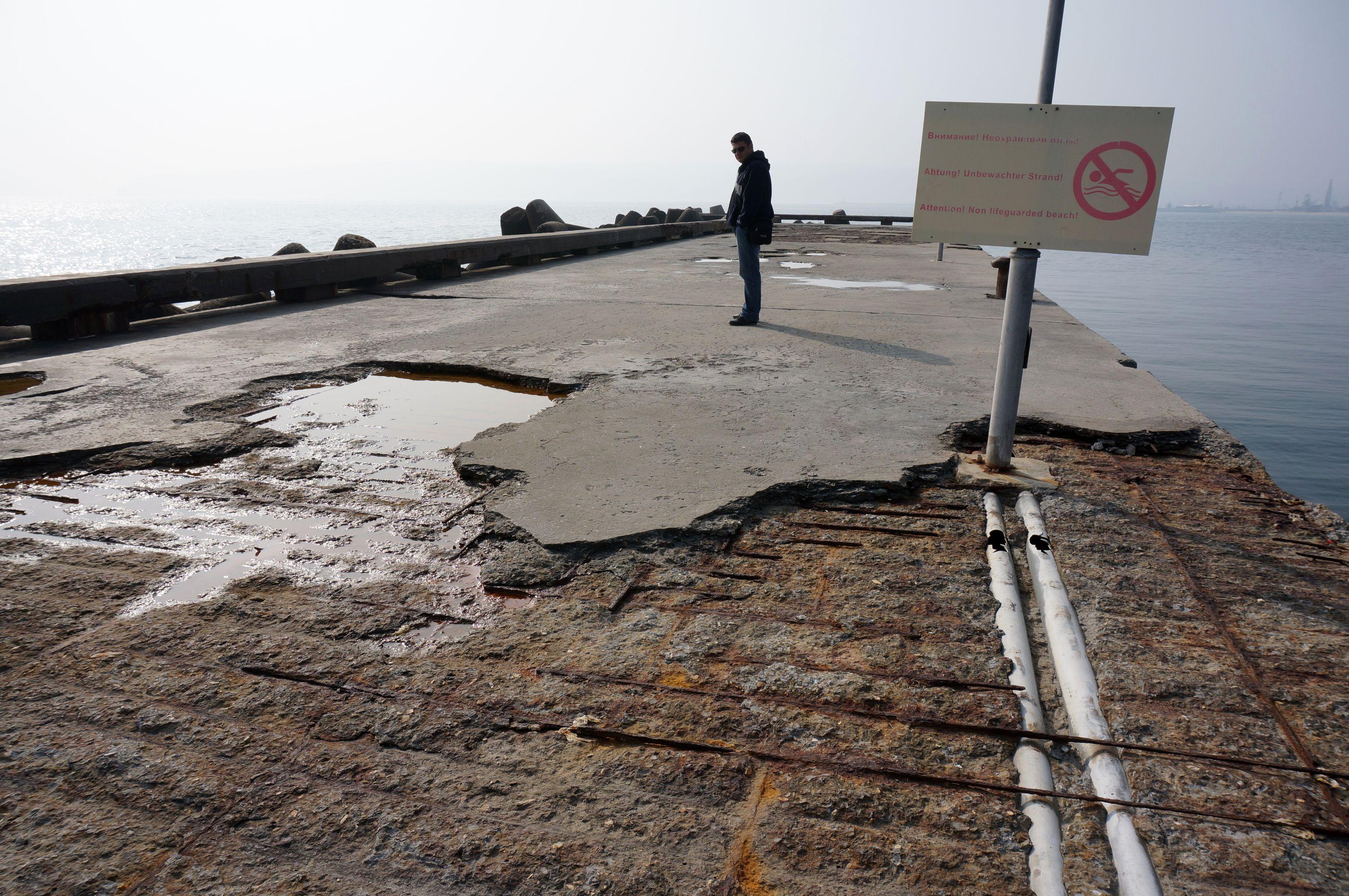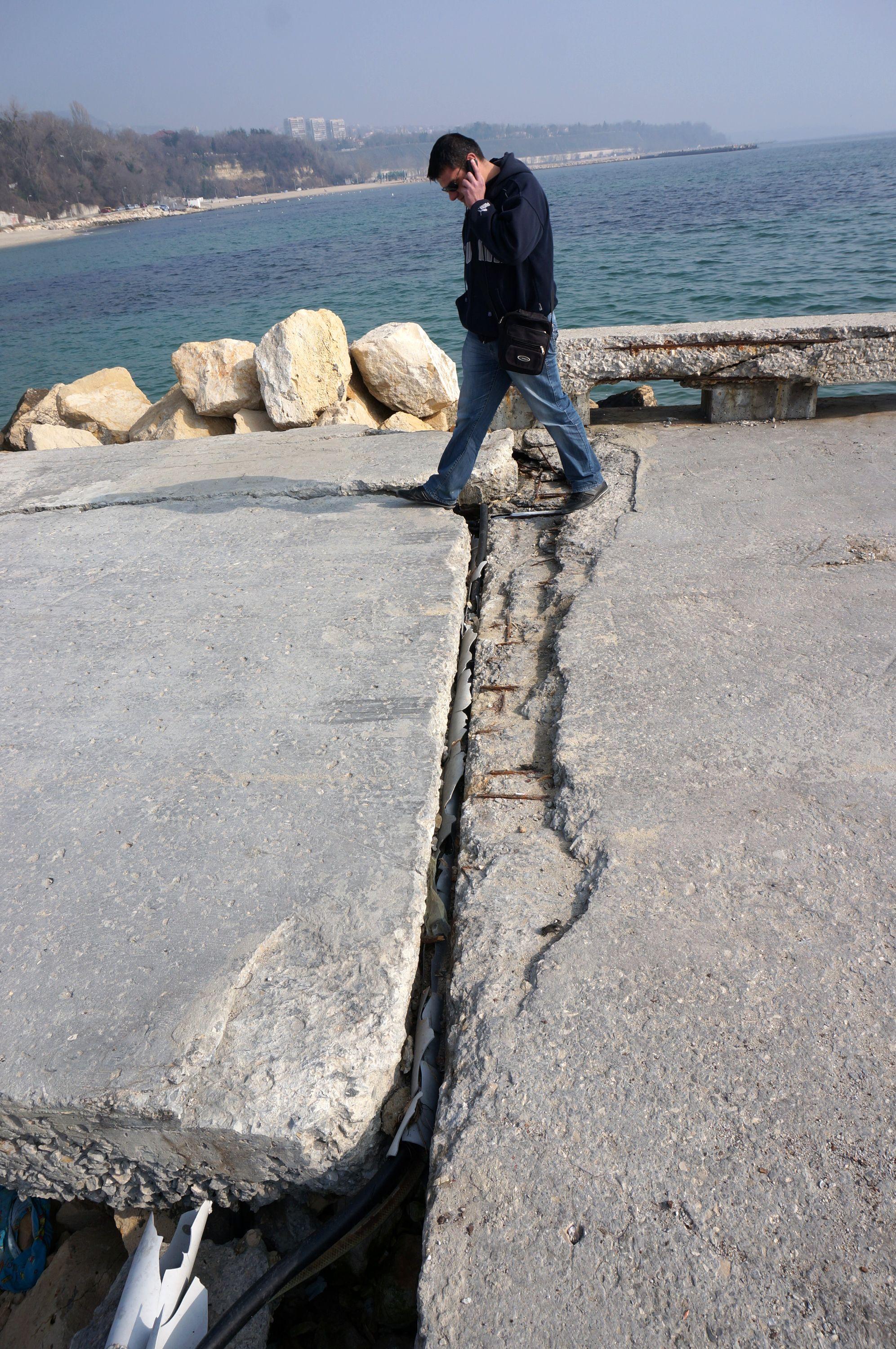 На много места бетонните плочи са начупени, стърчи арматура и местата са опасни за плажуващите.