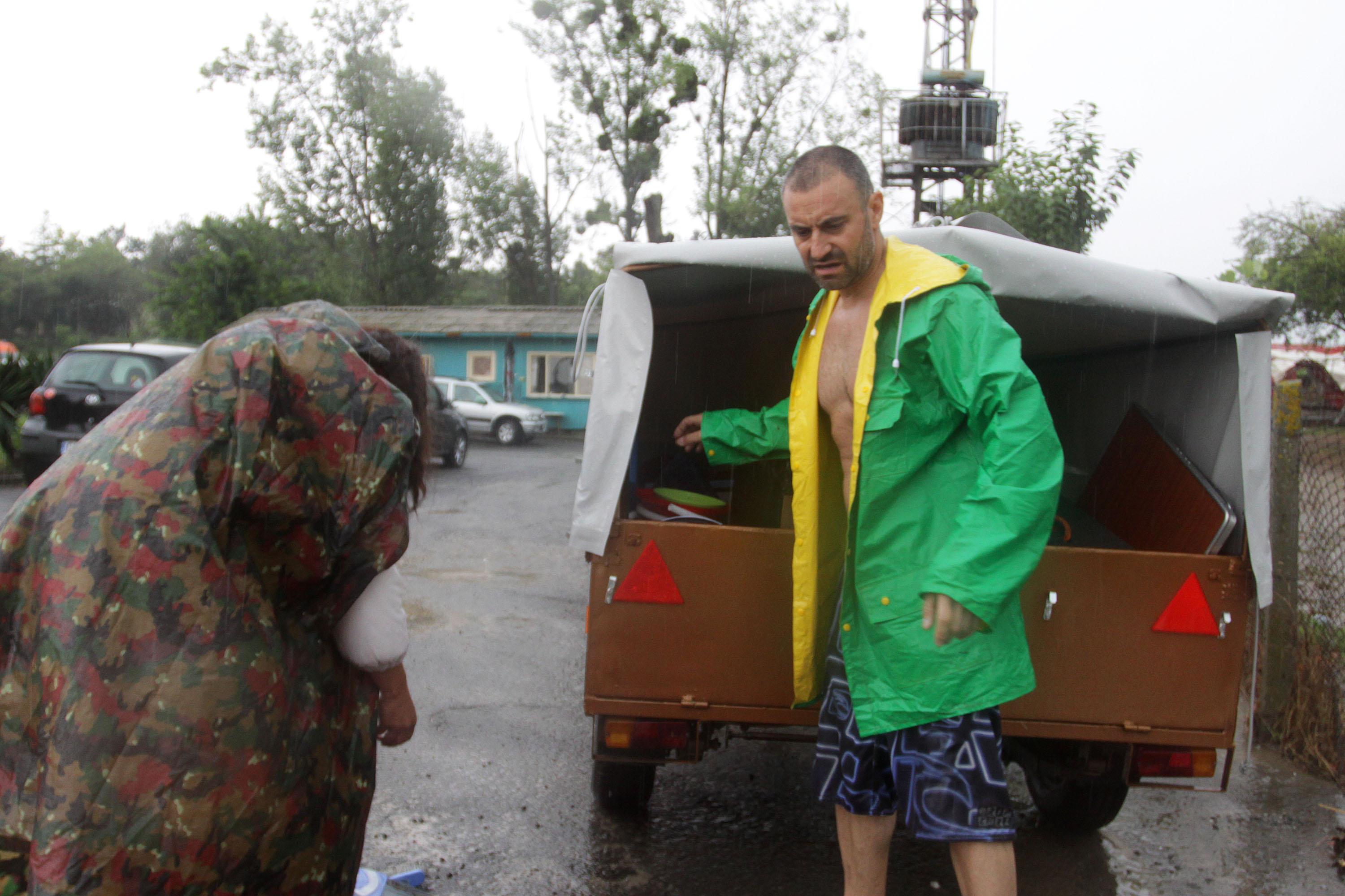 Насред наводнението Вельов събираше малкото му останали аксесоари за къмпинг в ремарке. Музикантът традиционно прекарва летните месеци по плажовете на южното ни Черноморие.