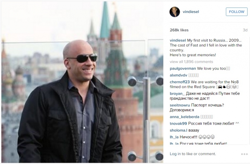 В коментарите под публикацията някои потребители съветват Дизел да не пътува до Русия, а други го питат дали не би искал да получи руско гражданство. „Питайте Рой Джоунс и Жерар Депардийо как се прави“, пише един от феновете на актьора.