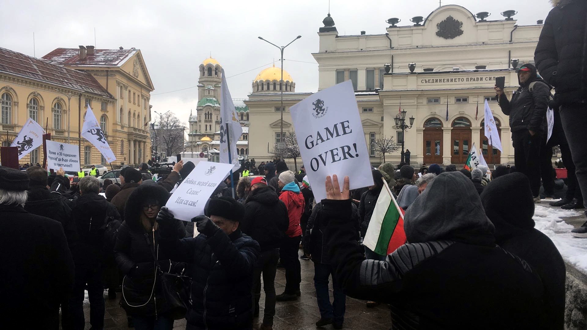 Недоволните развяват трибагреника и скандират "оставка", а около час след началото на митинга поеха по жълтите павета към Министерския съвет.