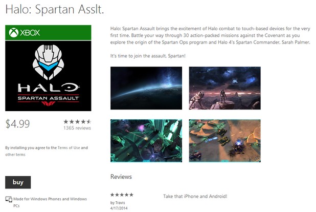 В интернет магазина на Microsoft се появиха нови универсални игри като шутърът „Halo: Spartan Assault". Те се отличават от останалите приложения със специален знак и текст „Made for Windows Phones and Windows PCs".