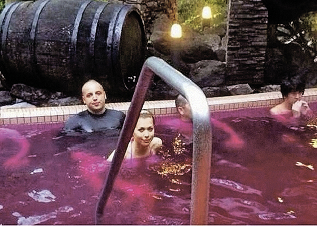 Големият син на ръководителя на Националната банка на Украйна не пропуска възможност да се потопи в басейн с червено вино – така се развличат туристите в Япония