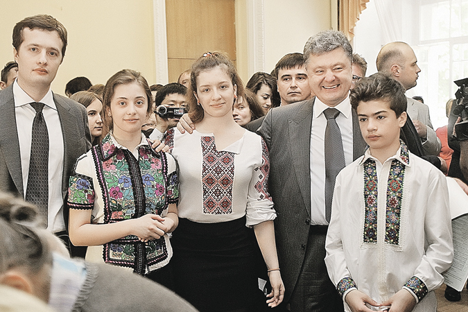 Украинският президент Петро Порошенко е горд баща на четири деца. Малкият му син Михаил е завършил седми клас в елитен лицей и в момента се готви за двумесечен курс по английски във Великобритания. Близначките Александра и Евгения се наслаждават на лятната ваканция и се занимават с танци и музика. Момичетата тази година учиха едновременно в Кловския лицей в Киев и «Конкорд колидж» в Англия.