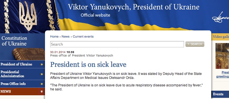 /КРОСС/ "Президентът на Украйна Виктор Янукович е в отпуск по болест". Това заяви заместник-началникът на отдела за държавни въпроси относно медицинските проблеми Олександър ОРда.