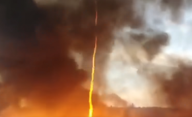 Впечатляващото явление е популярно като "огнено торнадо". То се наблюдава, когато студен въздух се смеси с горещ в небето, което предизвиква ефект на завихряне.