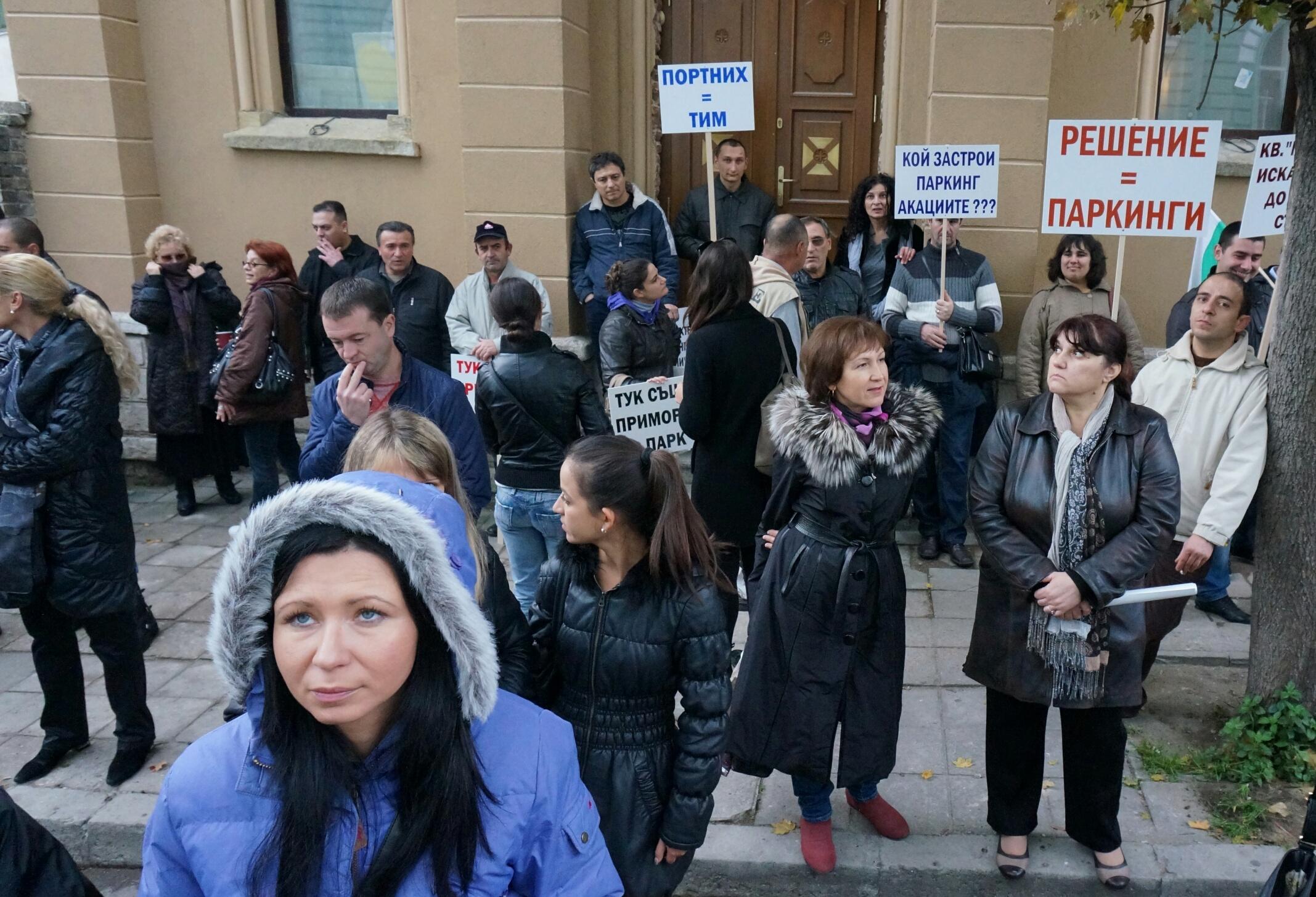 Варна /КРОСС/ Над 200 човека излязоха на нов протест пред община Варна заради кметската тотална забрана за влизане с автомобили в Морската градина. Живеещите и работещите в парка издигнаха плакати срещу варненския кмет Иван Портних и за пореден път поискаха преразглеждане на неговата заповед.