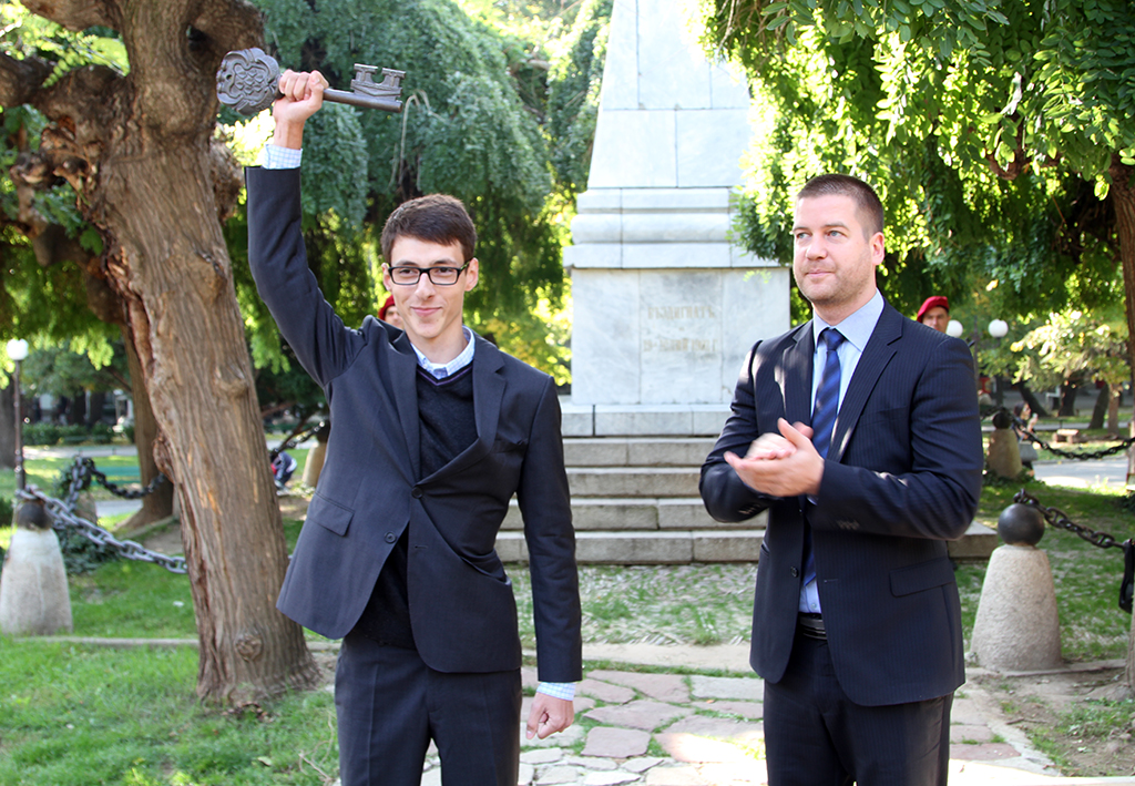 Той връчи символичния ключа на града на новоизбрания кмет на Млада Загора - ученика от Професионална гимназия по електроника "Джон Атанасов" Диян Ганев, който също поздрави младите хора и всички старозагорци с празника. По традиция от 18 години насам за един ден Стара Загора ще се управлява от Млад кмет, избран след оспорвано състезание в Младежкия дом.