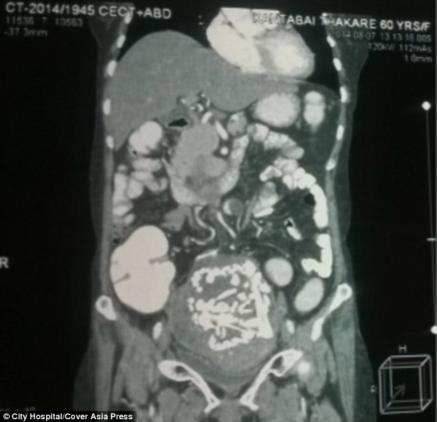 Макар болката временно да отшумяла, тя се завърнала след години, което принудило индийката да потърси помощ в болница в западните райони на страната, казва Муртаза Ахтар. "Тя дойде при нас, оплаквайки се от болки в коремната област", допълва лекарят, който е главен хирург в института по медицински науки Н. К. П. Салве в Нагпур.