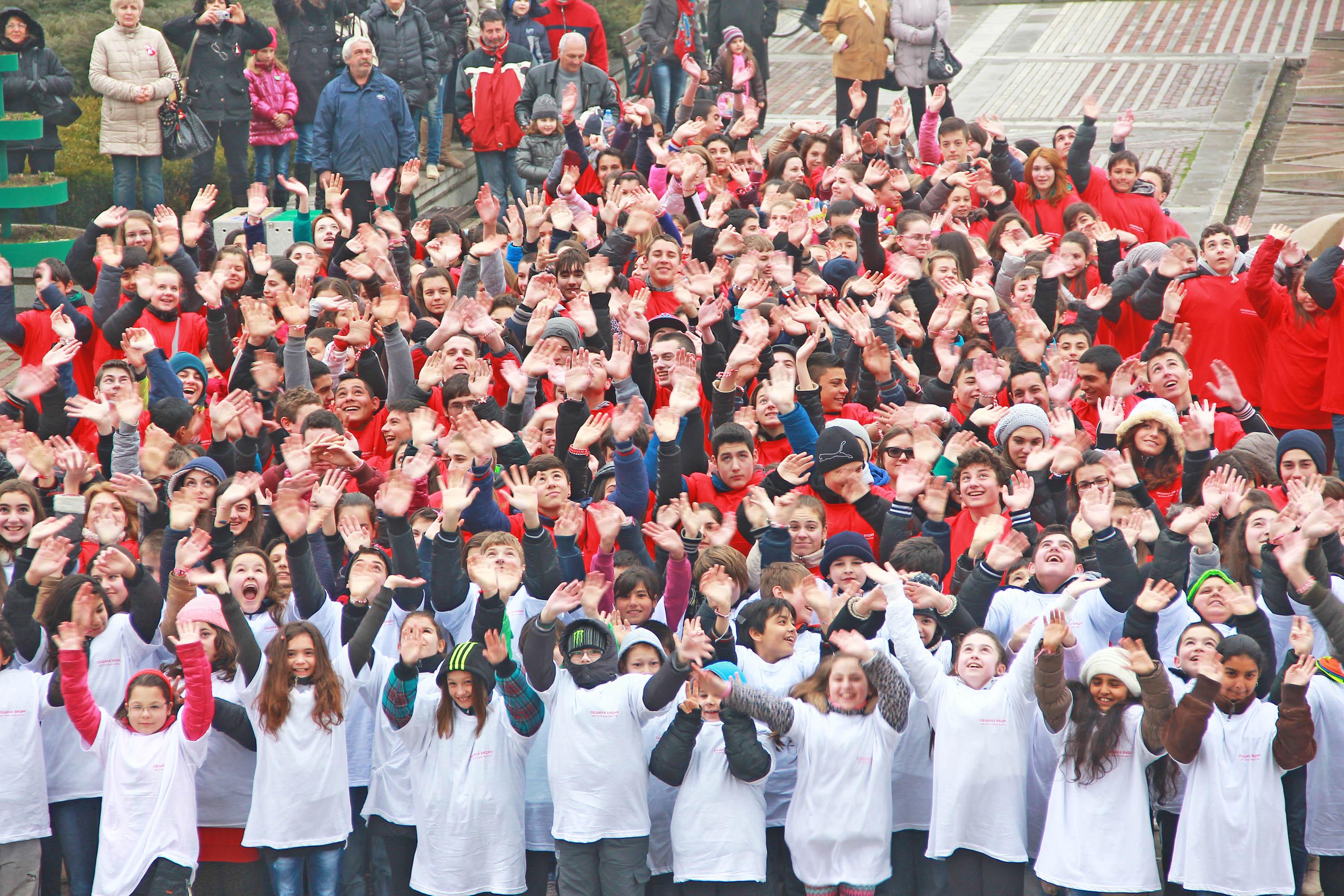 Видин /КРОСС/ Младежи от Видин наредиха жива мартеница на централния площад в града и по този начин се включиха в инициативата "Честита Баба Марта, Свят". 500 видински деца и младежи в рамките на пет минути подредиха на площада най-голямата жива мартеница правена досега.