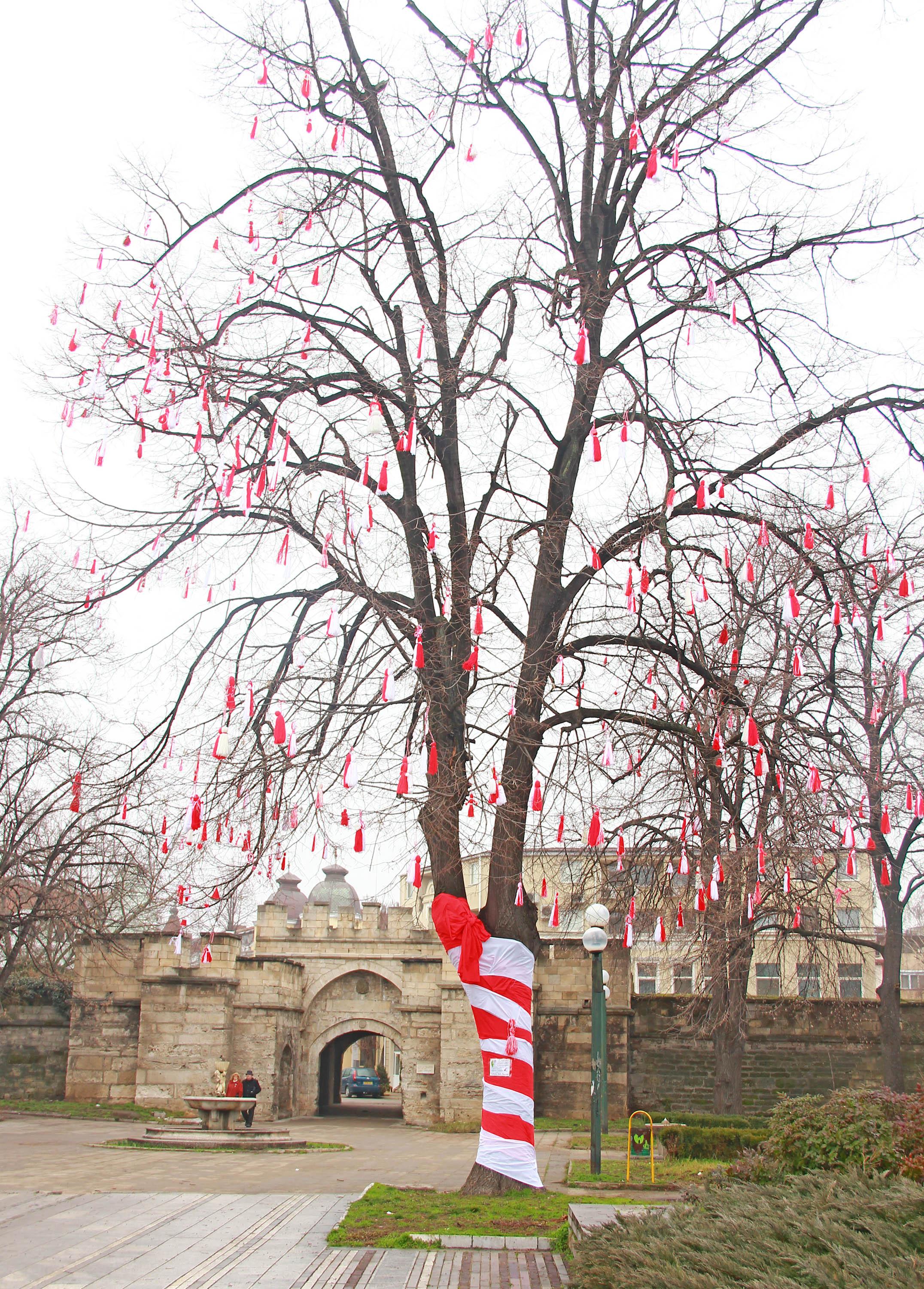 Видинчани украсиха дърво на Баба Марта в бяло и червено пред Стамбол капия в центъра на града с 70 мартеници.