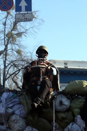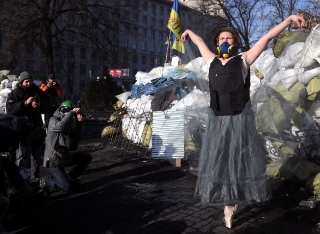 Доказателство за това са снимките, които ви предлагаме да разгледате. Сред активистите на Майдан има художници, музиканти, фотографи и танцьори, които демонстрират изкуството си директно тук на барикадите.