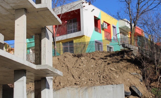 5-етажната кооперация се строи от миналата година. Над строежа се намира детска градина №8 „Вечерница“. Заради свличането на ската и оградата, кметът на Благоевград забрани извършваните СМР на кооперацията до представяне на конструктивен проект за укрепителни дейности и възстановяване на оградата.