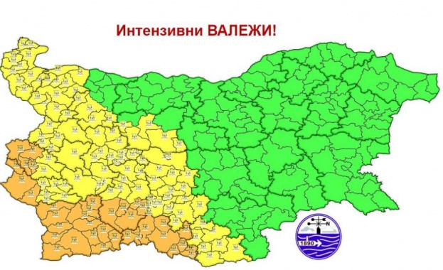 Жълт код за потенциална опасност и валежи е в сила за Видин, Монтана, части от Враца, Ловеч, София област, София град, части от Перник, Кюстендил, Пловдив, Пазарджик и Кърджали.
