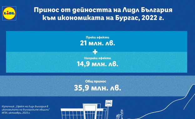 Така съвкупният принос към икономиката на община Бургас от дейността на Lidl само за 2022 г. възлиза на близо 36 млн. лв.