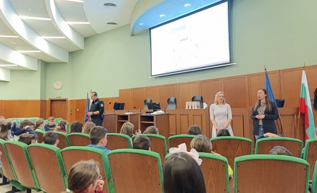 50-те децата от трети клас бяха посрещнати от прокурор Ралица Първанова и от съдия Христина Николова. Те им разказаха за възникването на правосъдието, за богинята Темида, за нейните везни и за съдебната система. Прокурор Първанова обясни на децата за ролите на прокурора и съдията, както и какъв цвят тоги носят.