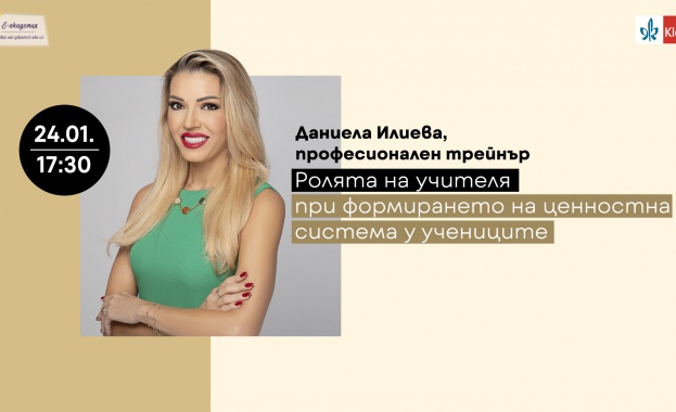 /КРОСС/ „Ролята на учителя при формирането на ценностна система у учениците“ - това е темата на първото за 2023 г. издание на Е-академия, която за трета поредна година подкрепя и вдъхновява българските преподаватели в предизвикателствата на професията. Онлайн срещата, част от инициативата на издателство Клет България започва на 24 януари от 17:30 часа в платформата на издателството, а лектор в нея ще бъде професионалният трейнър Даниела Илиева. Участието е напълно безплатно, а всеки желаещ може да се регистрира тук.