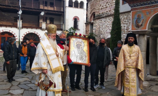 След утринното богослужение, водено от игумена на Светата обител епископ Сионий, иконата беше изнесена под камбанен звън от храма „Света Богородица":